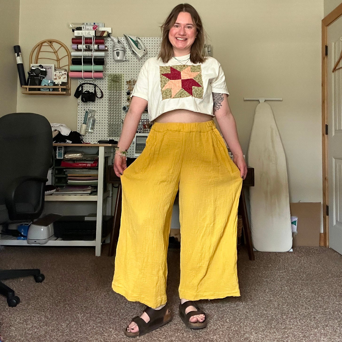 Of that list, the only item I made entirely from scratch was the pants. The pattern is the #zwblockpant (my second time making them) and the fabric is double cotton gauze by ISeeFabric in the shade Sunflower. Every other item was refreshed from my TMP.